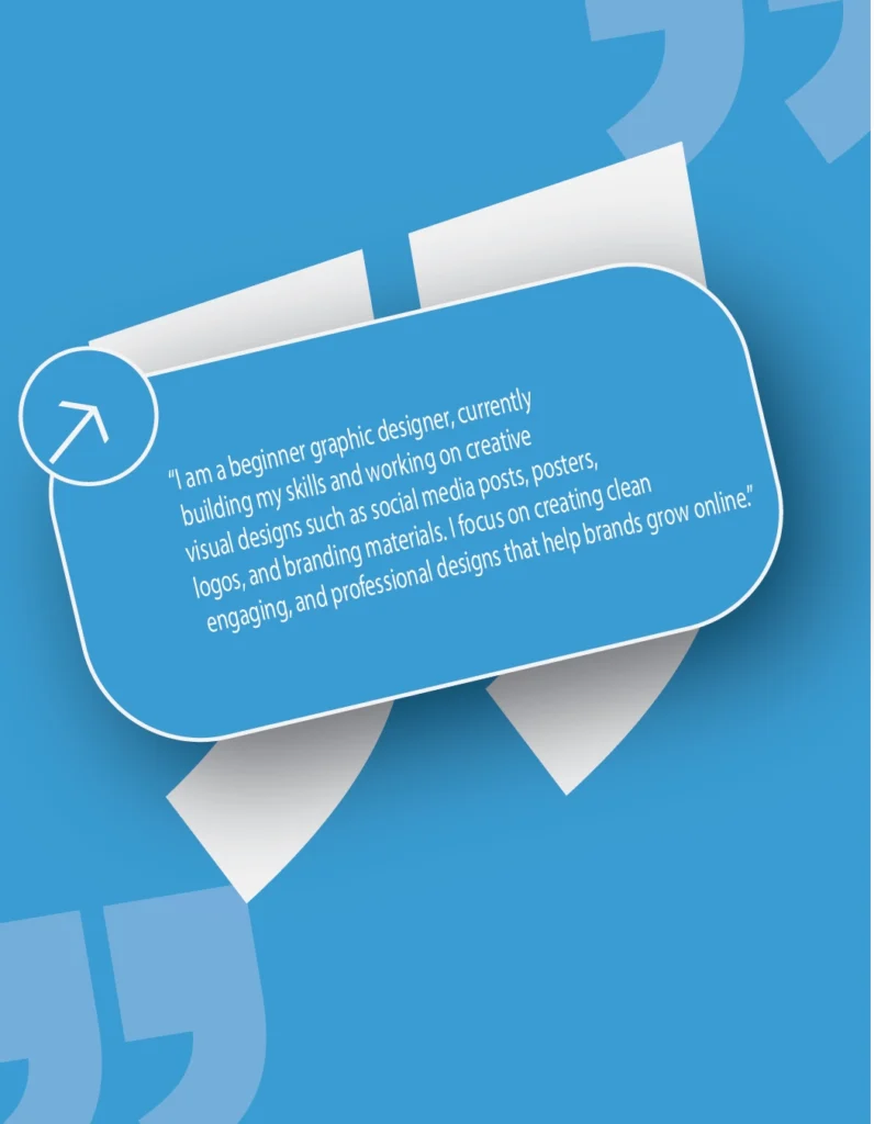 I’m constantly learning and improving my skills in areas such as social media marketing, branding, content creation, and visual design. My goal is to grow as a creative professional while delivering meaningful and impactful work.